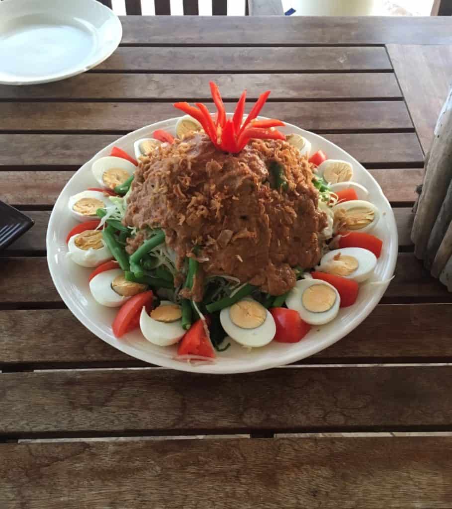 Following two, long awaited, warm water dives (Cliff and Andrea II)…we headed back to the house for our first expertly prepared meal from our new friend Norca. Wow, what a meal…we started with a green bean salad w/peanut sauce, then moved on to pork and chicken satay, rice, vegetables with noodles, and finally fried bananas with ice cream. I nearly exploded!