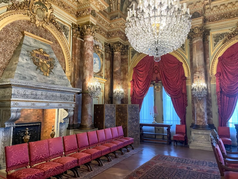Dining Room, The Breakers, Newport, RI – The dining room was one of the mansions grandest rooms.  As a summer “cottage”, The Breakers was used for entertaining guests and extended family, so the dining room was utilized for large banquets.  The Baccarat crystal chandeliers can light the room with either gas or electricity.  The family’s 1000 piece table silver was stored in a steel vault in the pantry!