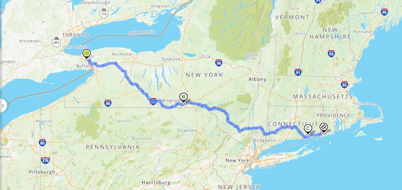 Niagara, NY to Endicott, NY, then onto East Lyme, CT for two nights, then another two in Ashaway, RI