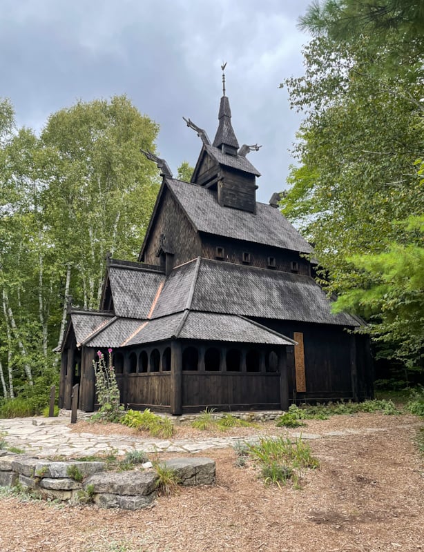 Stavkirke, Washington Island, WI – The Trinity Evangelical Lutheran Church built a replica stavkirke, modeled after the Borgund Stave Church built in 1150. The volunteer led construction began in 1983 and completed in 1995. It was created to celebrate the Scandinavian heritage of the island, using old construction techniques.