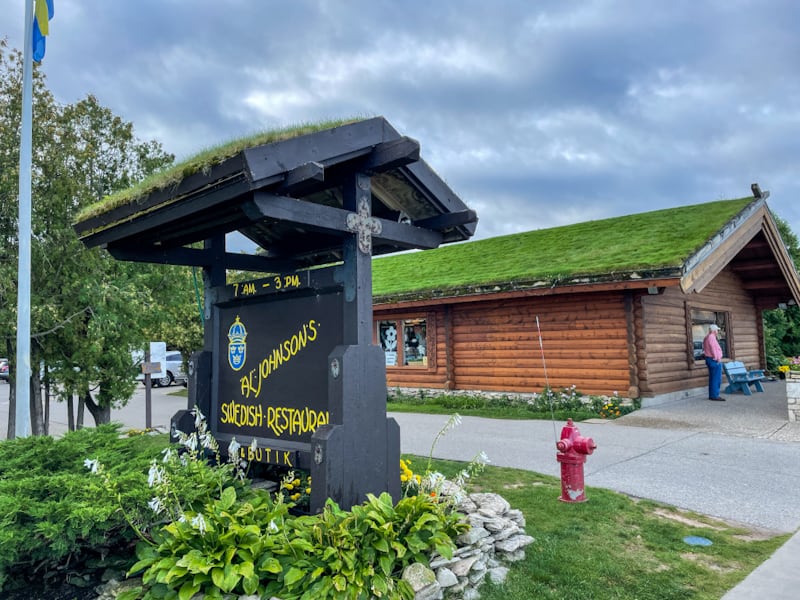Little Bohemia Lodge, Manitowash Waters, WI – The setting of a botched raid by the FBI against the Dillinger Gang in 1934. The ensuing gun battle left two dead and four severely wounded, the toll including civilians. Some scenes for the movie Public Enemies were also filmed on location at the Little Bohemia. Little Bohemia Lodge, Manitowash Waters, WI – The historic lodge remains as it was at the time of the raid, along with memorabilia and bullet holes. Cana Island Lighthouse, Baileys Harbor, WI – Standing watch since 1869, it is still used as an active navigational aid by the US Coast Guard. Cana Island Lighthouse, Baileys Harbor, WI – Due to high lake levels, the causeway to Cana Island is flooded. Door County offers a complimentary tractor and haywagon ride to shuttle you over. With the right footwear, we could have also walked. Al Johnson’s Swedish Restaurant, Sister Bay, WI – A fantastic Swedish breakfast, complete with pancakes and meatballs. The grass roof is maintained by goats, sadly no goats were out today.