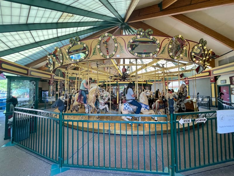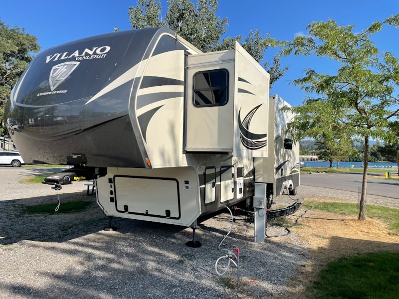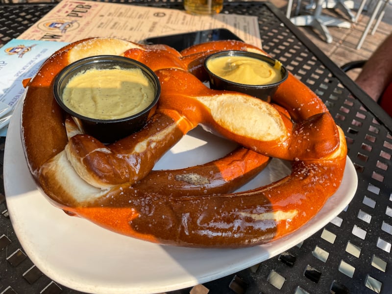 Blackwell Island RV Park, Coeur d’Alene, ID – All set up for the first of our 52 night trip!Blackwell Island RV Park, Coeur d’Alene, ID – Enjoying happy hour along the Spokane River, the primary outflow of Lake Coeur d’AleneMissoula, MT – Spearheaded by a local Missoula cabinet maker, Chuck Kaparich, A Carousel for Missoula opened in 1995 after countless hours of community volunteer hours, including assembly of the frame and carving of the ponies. Mr. Kaparich agreed to donate the frame and first 4 carved ponies on the condition that Missoula agree to never take the carousel apart.Montana Brewing Company, Billings, MT – We enjoyed a “small” pretzel snack at the local brewery…the pretzel is also known as the destroyer of dinner!