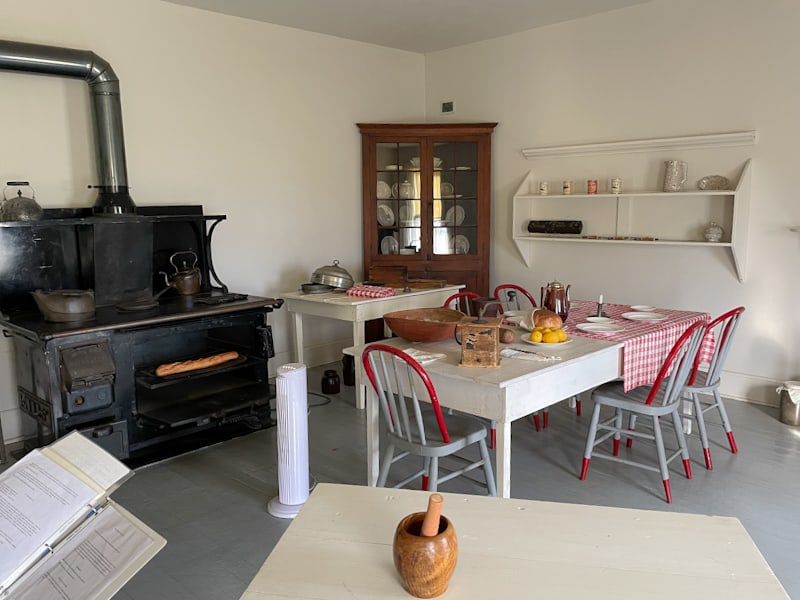 Chateau de Mores, Medora, ND – A view of the kitchen, the two story wood framed house has been meticulously restored and contains many of the original furnishings and personal effects of the de Mores family.