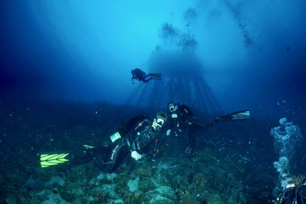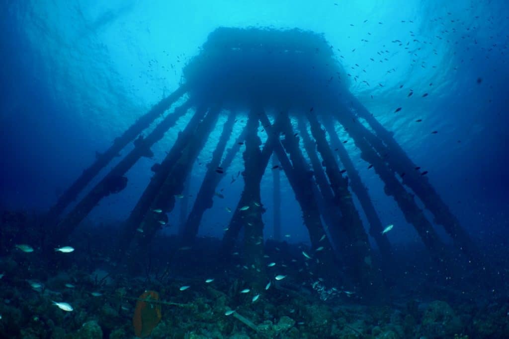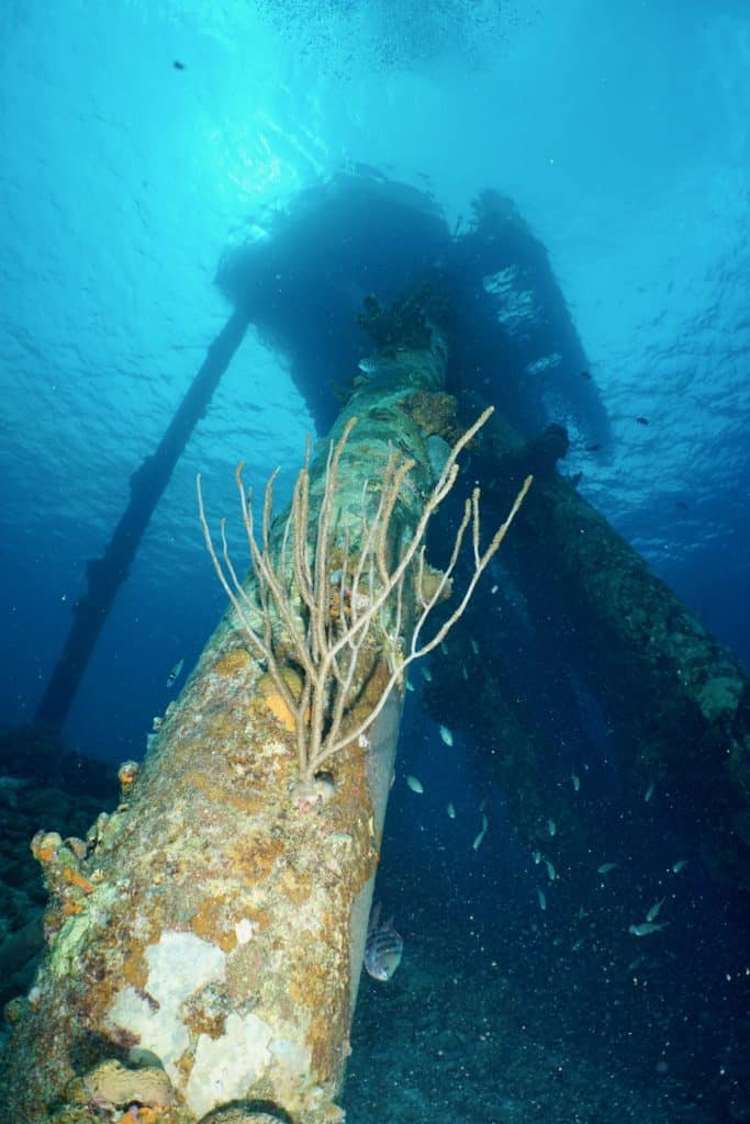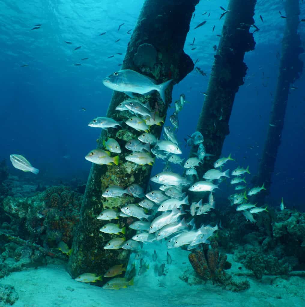 Luck is a funny thing. Sometimes it works against you (especially when airlines are involved!). Other times it works in your favor…like when you get to dive one of your favorite sites, in spite of it being closed for repairs. Salt Pier is a must for any Bonaire diving agenda. Located on the southern end of the island, Salt Pier is a privately owned facility used for loading the “mountains” of salt harvested from the nearby flats. If you do a Google image search for “Bonaire Salt Pier” you’ll see numerous pictures of it from above water.